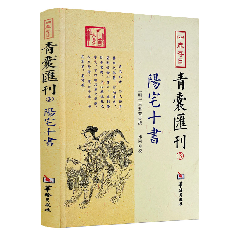 青囊,即古代學者隨身攜帶實用典籍的袋子,後被用指中國古代子部典籍的別稱,包含了天文地理、諸子百家、士農工商等諸方面的內容。本書據《四庫存目提要》,一一收集館藏或私藏原本,以中國古代哲學思想為指導,輯錄出納*經典籍的子部相關著作,簡體橫排,參閱諸本,點校整理,以便於當今學者對中國古代哲學的研究。是書規模宏大,徵引豐富;圖文並茂,收錄廣泛;結構嚴謹,體例完備;分類詳細,便於檢索。是研究中國古代哲學思想的重要文獻資料。本冊為郭璞撰的《四庫存目青囊匯刊(1青囊秘要)》。