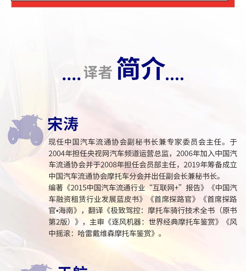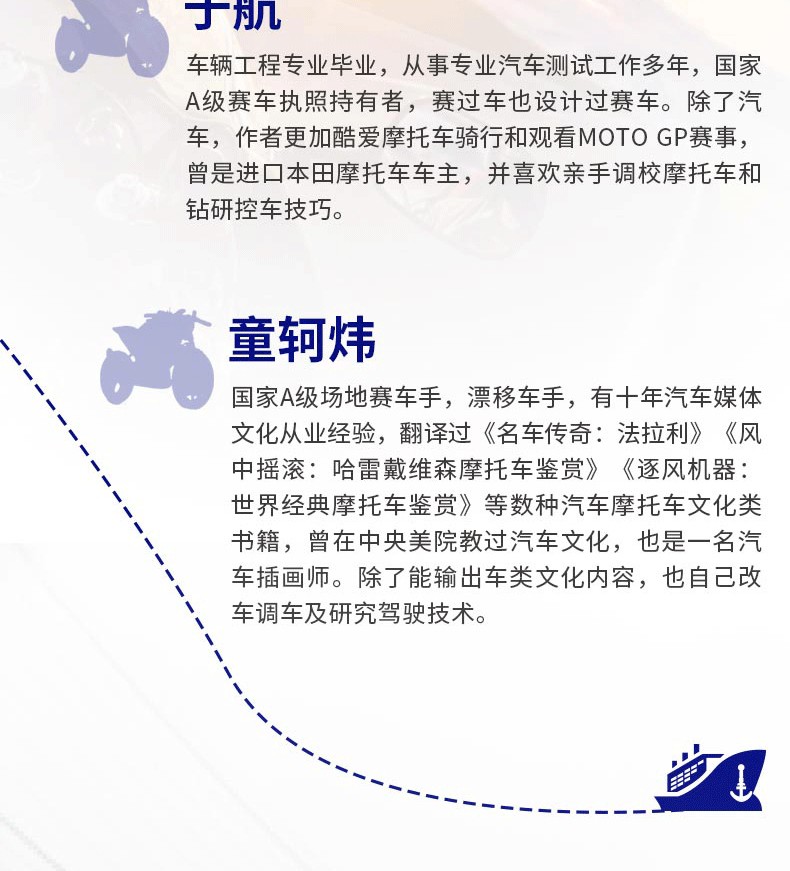圖文全方位講解摩托車駕控技術,摩托車愛好者的推薦指南科普書本書從基礎駕駛到身心健康,甚至是賽道騎行等各個方面去教導摩托車愛好者如何騎好摩托車。本書通過圖文結合的形式深入淺出地分解每項騎行技術的基本原理,讓摩托車愛好者快速地理解如何學習騎行技術。希望本書能改變大家對摩托車的認知,提升摩托車愛好者的騎行水平,更加自由、安全地享受騎行生活。