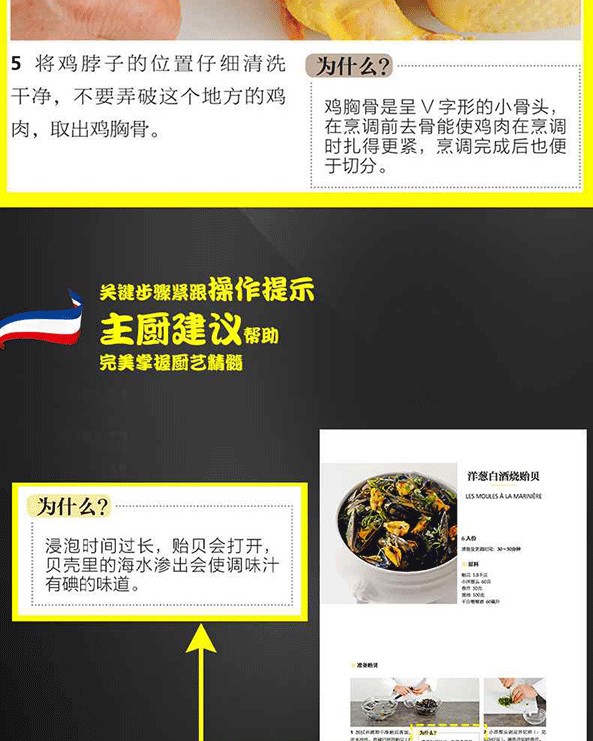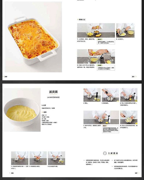 本書中的內容,以圖文並茂的形式涵蓋了所有需要掌握的技巧方法、器皿使用和原材料等內容。從一開始的高湯、醬汁和莎莎醬製作入門,學會如何去攪拌成濃稠程度適宜的乳脂狀荷蘭醬,如何防止甜味的卡仕達醬在製作過程中不凝結成塊,或者如何將巧克力和奶油一起攪拌均勻,以製作成為雖然簡單但卻是夢幻般的甜點淋面。