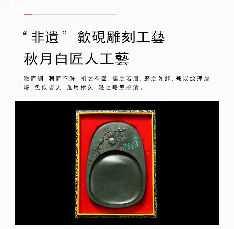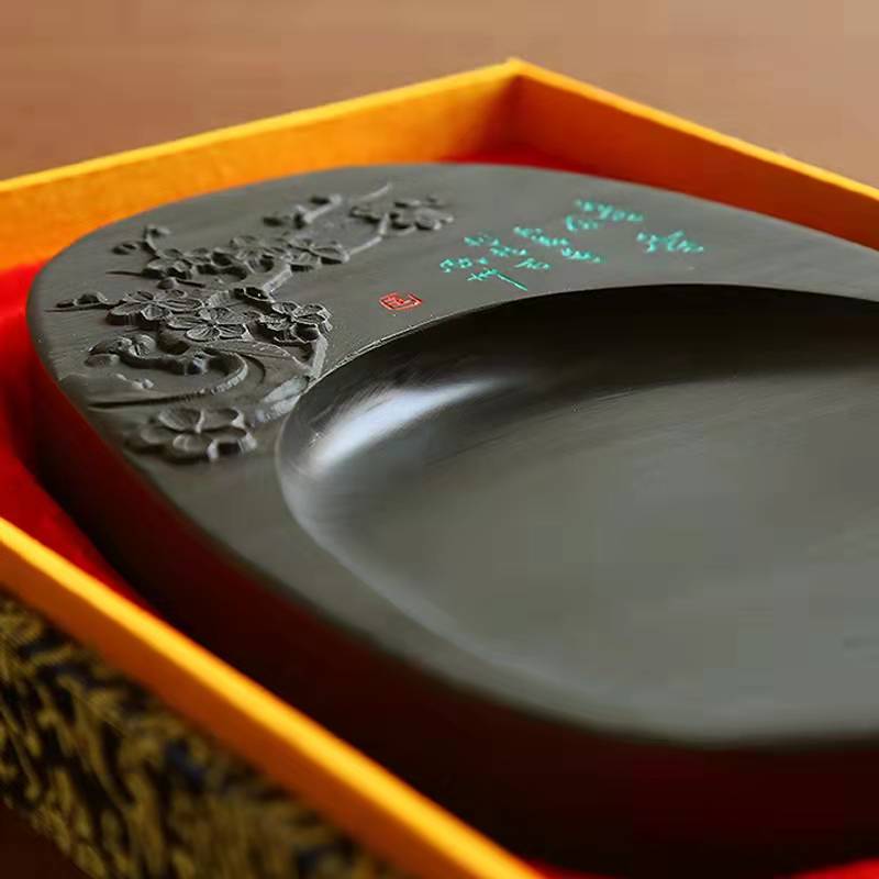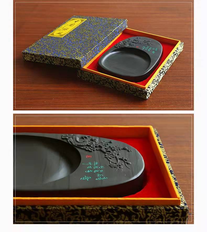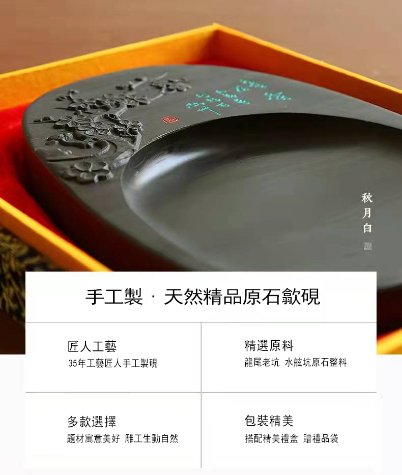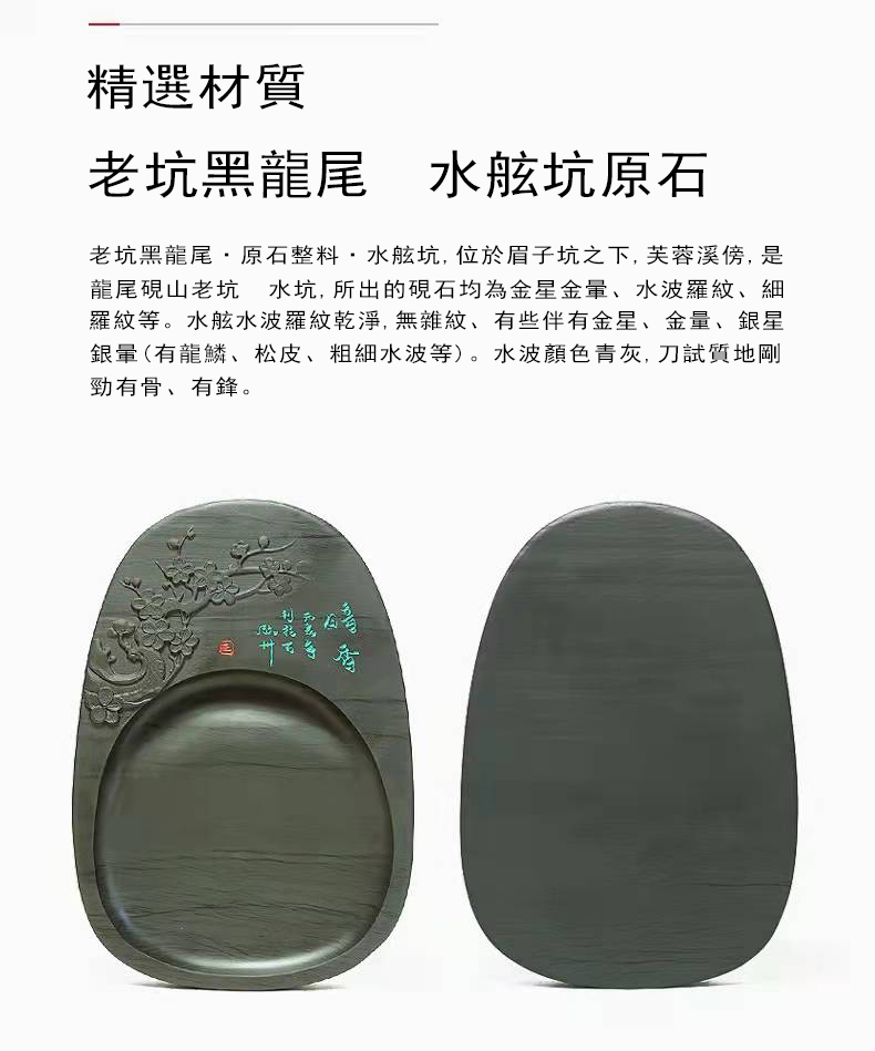 國家非遺暗香歙硯 8寸原石硯台(19.2*13.2*2.8cm) 老坑天然歙縣硯台 送金不換墨錠