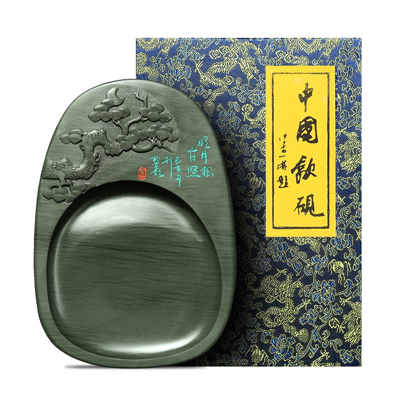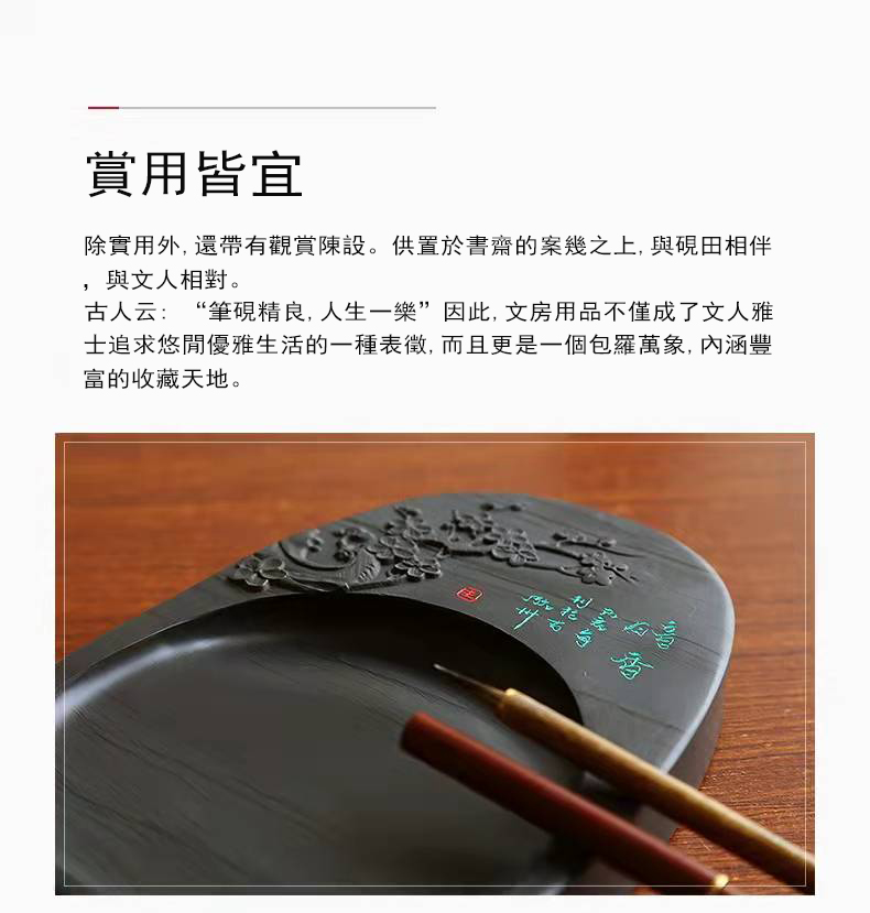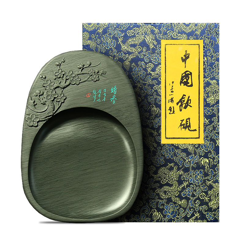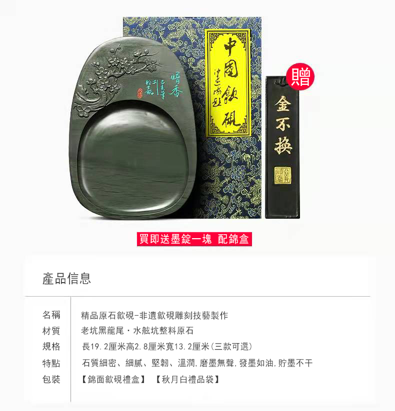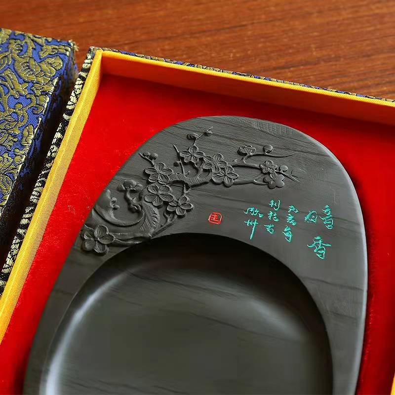 國家非遺暗香歙硯 8寸原石硯台(19.2*13.2*2.8cm) 老坑天然歙縣硯台 送金不換墨錠