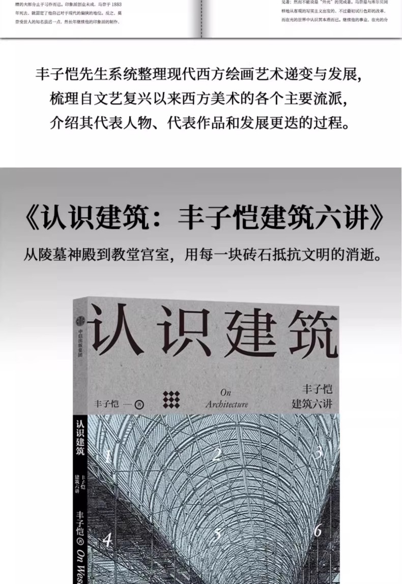 《認識建築》在《西洋建築演講》(1935年)的基礎上編輯而成,新版增添圖百餘幅。為什麼古埃及帝王要耗費巨大心力建造龐大而笨重的金字塔?為什麼希臘神殿的柱子上有一道細溝?為什麼早期的基督教堂都建在地下?全書對古今建築藝術發展做了全面梳理,以豐富實例和深入淺出的講解,融會貫通地揭示了建築背後的文化與藝術變遷。豐子愷先生在書中提到,“建築是時間的載體,它不僅為人類提供了棲身之所,更承載著時代精神與文化的氣息”,豐子愷憑藉自己深厚的藝術積淀,將建築的發展與經濟、政治、宗教、文化的發展關係細細分析,娓娓道來。