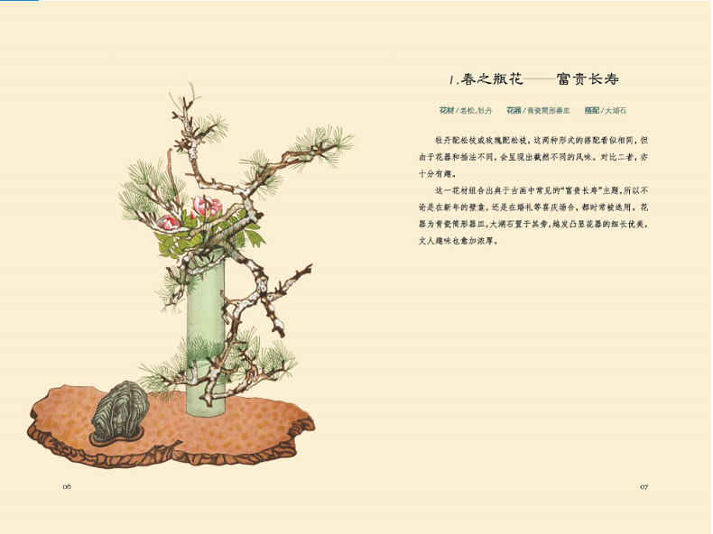 花道是日本傳統的插花藝術,流派眾多,代表流派有池坊流、小原流、草月流等。 “盛花”“瓶花”均是日本花道樣式,由小原雲心始創,於20世紀初興起。本書分兩冊,將公版圖書重新進行翻譯整理,通過圖繪及作品講解介紹50幅日本盛花瓶花作品及50幅小原流派二代家元小原光雲的插花作品,意在向讀者全面展現日本花道之美。