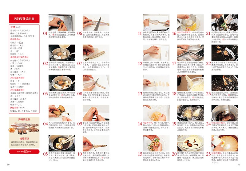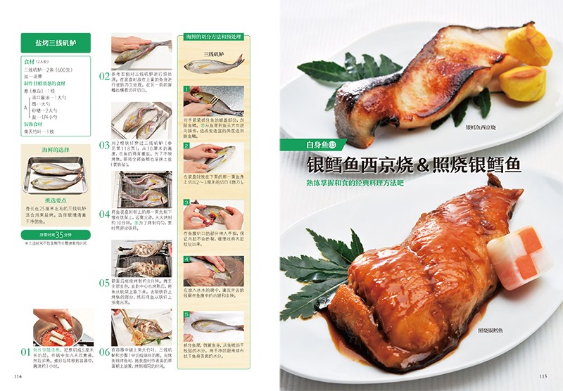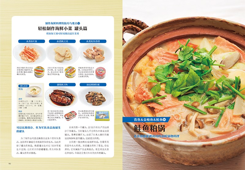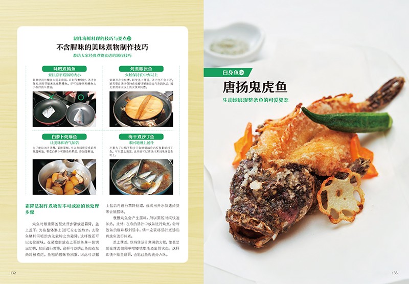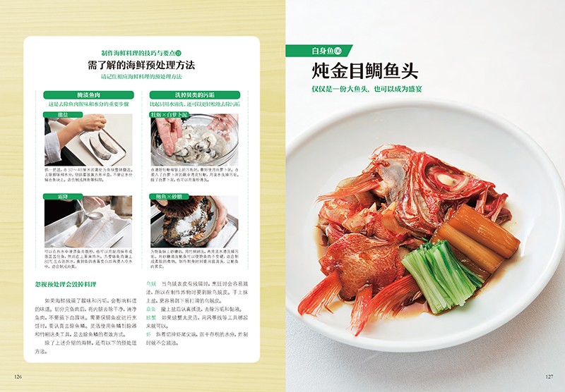 《海鮮料理》,由精通日料、西餐、中餐的三位大廚介紹106種海鮮佳餚,包含金槍魚、沙丁魚、三文魚、蝦等海鮮的美味製作方法,並給出選購和處理海鮮及在不破壞食材營養前提下使之色澤和口味更上一層的各種訣竅。