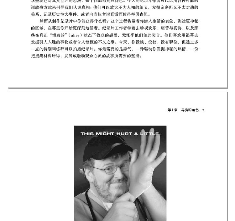 \\\"第1章 導演的角色 1.1? 誰有興趣拍紀錄片 走進任何一個紀錄片影展,你會看到各種不同的導演—年老的、年輕的、害羞的、直率的、心事重重的、內向的、外向的、身材高大的與嬌小的,他們大部分友善、謙遜而且容易親近。他們透過自己的影片來訴說深刻的事情,同時保持著謙和和真誠,跟他們在一起你感覺舒適自然。他們的作品,無論長短,都帶著你走上一段你所不知或者沒有預期的神秘旅程。例如波蘭導演鮑威爾?拉辛斯基(Pawel?Lazinski)的12分鐘片子《姐妹》(The Sister,1999,圖1-1),只不過拍攝了一對老姐妹在天井長凳上的爭吵過程,那個姐姐要妹妹去走走,讓人工髖關節活動一下,但每次妹妹總是微笑著迴避。兩人每次抱怨對方時都很有心機地向著攝影機說話,老姐姐說爸媽太寵妹妹讓她懶慣了,妹妹則說姐姐一直對她頤指氣使。這部片子以一種深刻的真實觸動了你:手足之間始終如一,爭吵如同每日必做的儀式不可或缺,但是時光不留人。其中一人可能瞬即離世,兩人以吵吵鬧鬧互相安慰的一生也將走向寂靜。