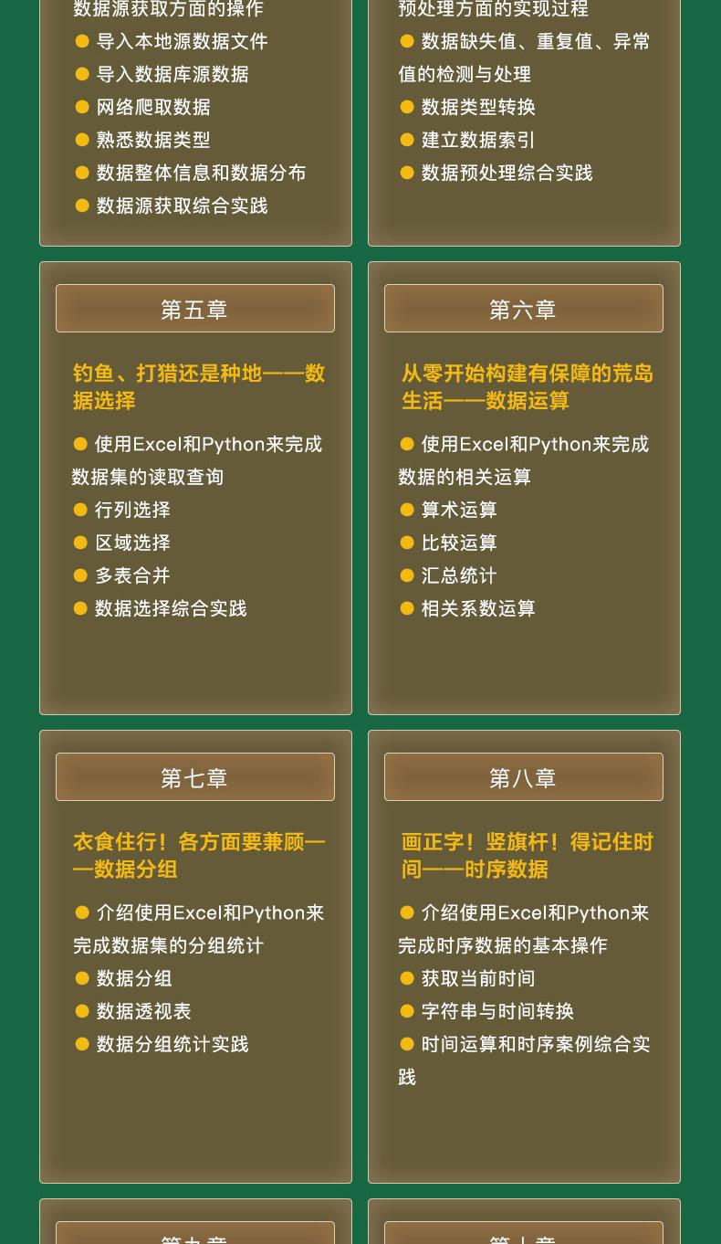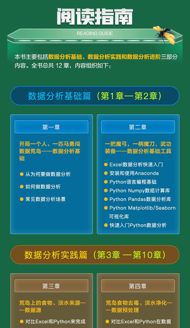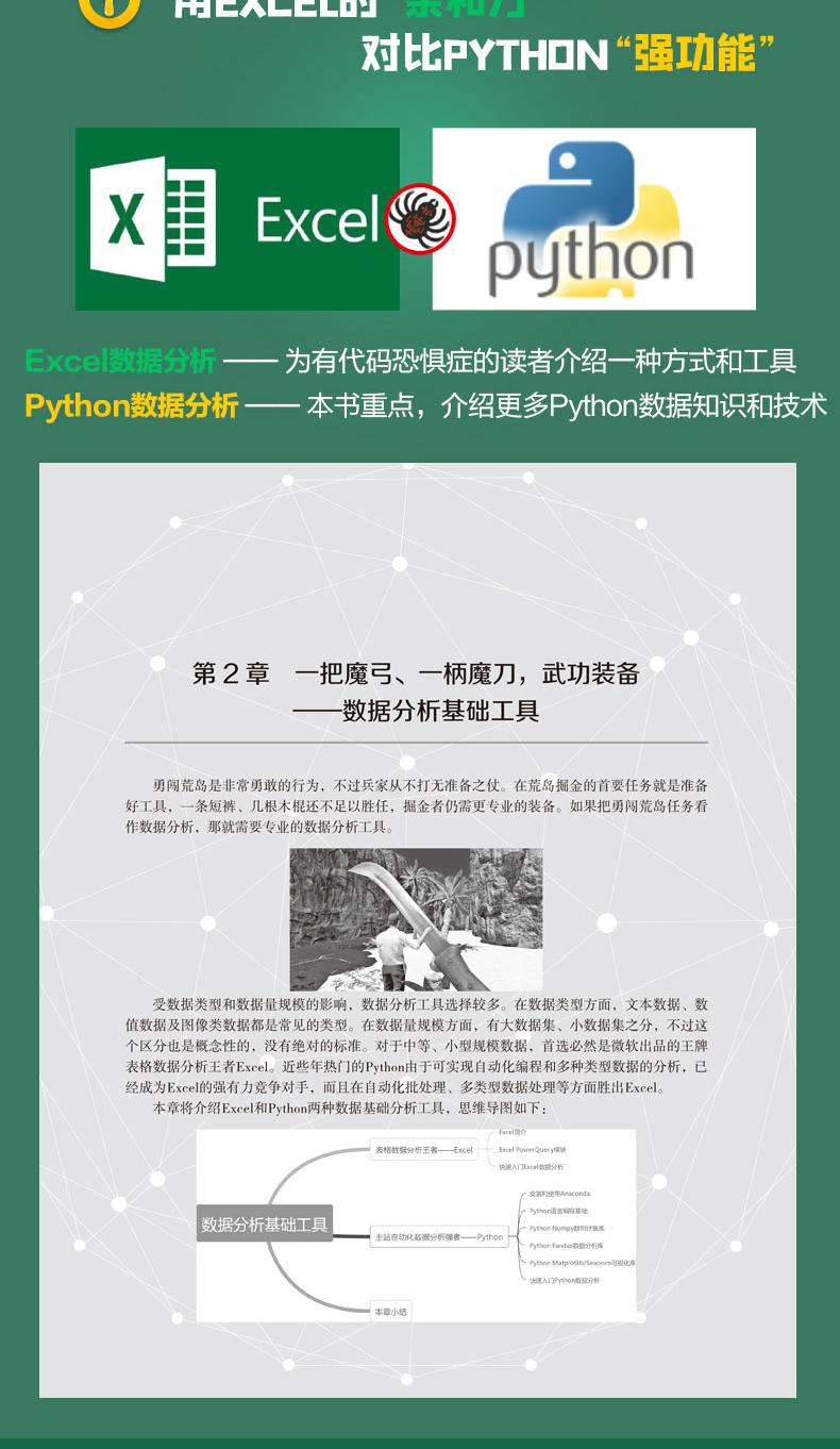 本書將掘金者荒野求生的遊戲場景代入數據分析過程,形象貼切、結構緊湊、內容翔實、圖文並茂、案例豐富,適合對數據分析感興趣的讀者入門和進階學習,同時對從事數據科學、大數據相關工程的技術人員亦具有一定參考價值。