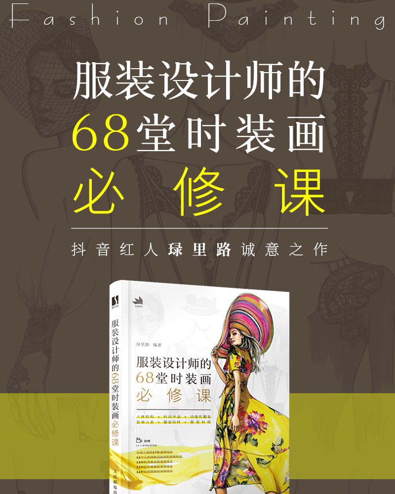 想了解SK-II,《VISION 青年視覺》等品*合作設計師的時裝畫創作心法 技巧? 比起一般的繪畫題材,更喜歡時尚題材和風格的繪畫作品?跟著抖音人氣時裝畫講師?f里路開始68堂時裝畫必修課的學習吧!本書濃縮了時裝畫講師@?f里路 近十年來在服裝設計、插畫設計、時裝畫創作的學習與教學經驗, 1.注重款式圖練習,圖書封面護封背面以及書中4處大開拉頁為讀者提供了豐富的款式樣式參考圖。 2.注重對服飾設計審美的培養,全書案例強調畫面的設計感和整體感,質感與美感更佳。 17種 不同繪畫工具的表現技法 14個 人體結構及局部的表現技法 14種 時尚單品的表現技法 13種 紋樣服裝的表現技法 14種 材質服裝的表現技法 幫你練好基本功,掌握將服裝效果圖完全表達出來的技術,為後續打造個人的風格打下堅實基礎。全書採用空背裝裝幀工藝,方便圖書平攤展示,邊學邊畫,提升學習體驗。本書附贈11 個書中典型案例的繪製過程視頻