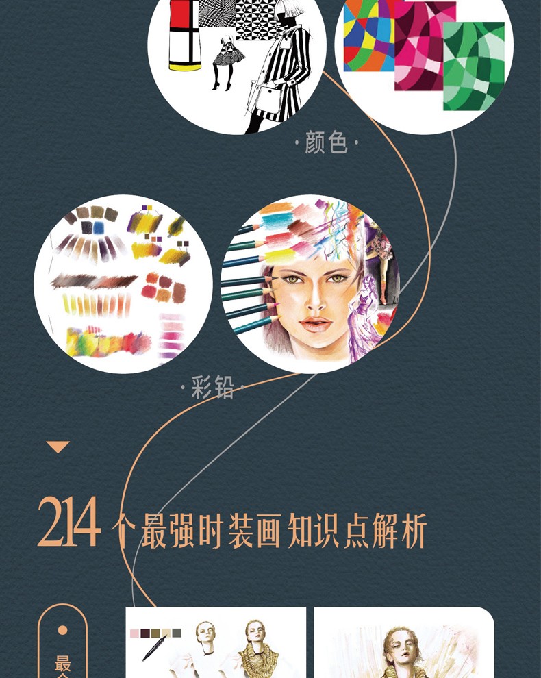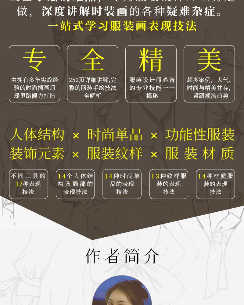 這是一本講解時裝畫表現技法的教程。全書共7章,第1章講解時裝畫的基礎知識,第2章講解人體的表現技法, 第3章講解不同單品的表現技法,第4章講解不同細節裝飾的表現技法,第5章講解不同功能性服裝的表現技法,第6 章講解不同紋樣服裝的表現技法,第7章講解不同材質服裝的表現技法。本書以羅列的方式呈現了68個精心篩選的知 識點,大部分知識點都有相應的案例進行實戰演練,方便讀者快速、直觀地掌握時裝畫的繪製技巧。本書適合服裝設計相關專業的學生和服裝從業者閱讀。