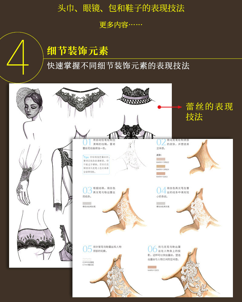 51 蕾絲與綢緞拼接效果的表現技法 155