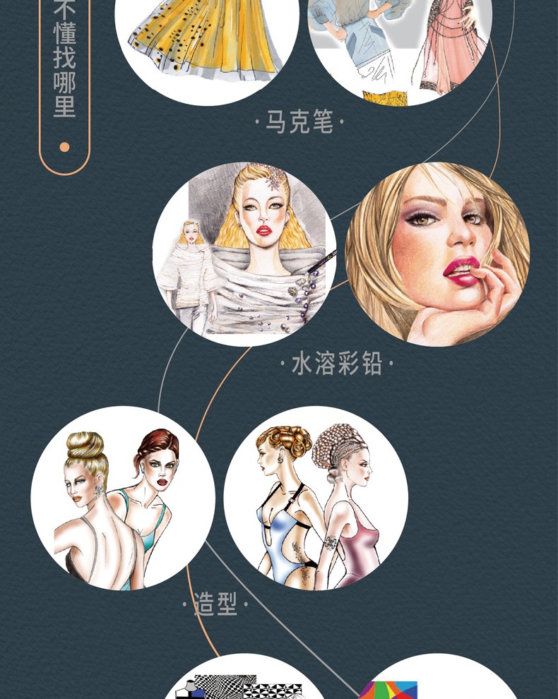 時尚視覺 跟著大師學時裝畫+服裝設計師的68堂時裝畫必修課 服裝設計製作 時裝畫手繪表現技法入門教程 彩鉛馬克筆水彩繪製教程 模特人體比例結構設計