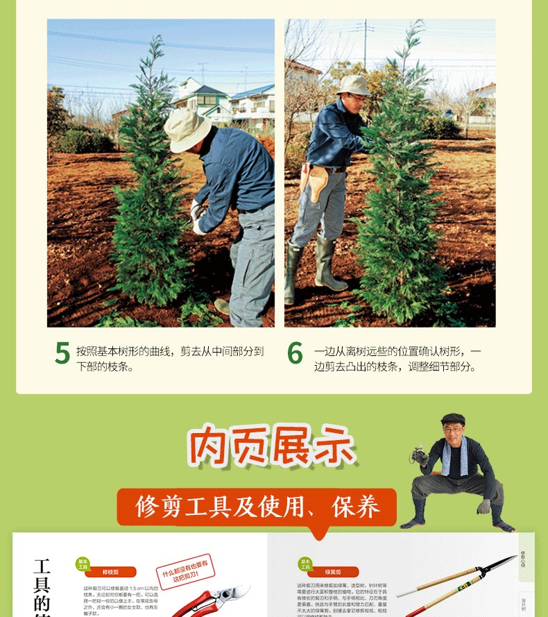 本書以面向普通園藝愛好者的花木修剪技巧為主要內容,以實景圖片和趣味插畫展示花木修剪手法。 Q書共分為6章,分別介紹了落葉樹的常用修剪技法、常綠樹常用修剪技法、花木常用修剪技法、針葉樹常用修剪技法、造型樹修剪技巧及藤本植物的修剪方法。