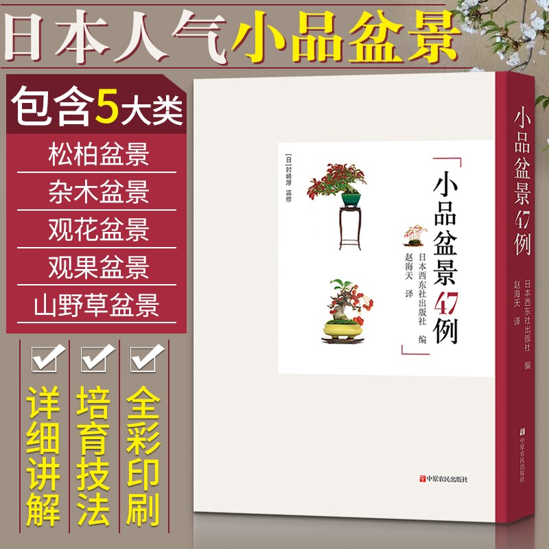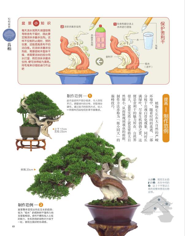 咱們這本書講的是日本人氣小品盆景的培育技法,前面1/3部分是通識部分,後面是松柏類、雜木類、觀花類、觀果類和山野草類5大類47種小品盆景的具體製作技法,把要點和關鍵技術交代得詳細又精準,對得起您所花的每一分錢。
