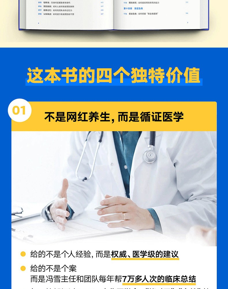 文本特色 簡單易懂,搭配翔實的數據,具有較強的可讀性與參考性。 2.裝幀特色 精裝雙封,設計精美。封面採用特種紙,內封觸感膜+燙金工藝,十分有分量。 3.現實意義 為提升家人健康水準、促進全民健康提供有效且實用的參考。