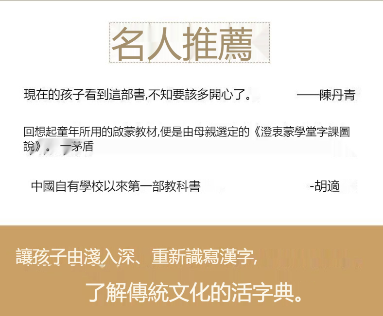 開啟傳統文化的大門,繞不開的啟蒙識字讀本! 《澄衷蒙學堂字課圖說》是民國一代文化大師胡適、豐子愷、茅盾、梁漱溟等大家的啟蒙課本。這本插圖版的《說文解字》,影響了一代代語文課本編寫的“近現代中華文化百科全書”,也是學習傳統文化必不可少的一本隨身讀本。