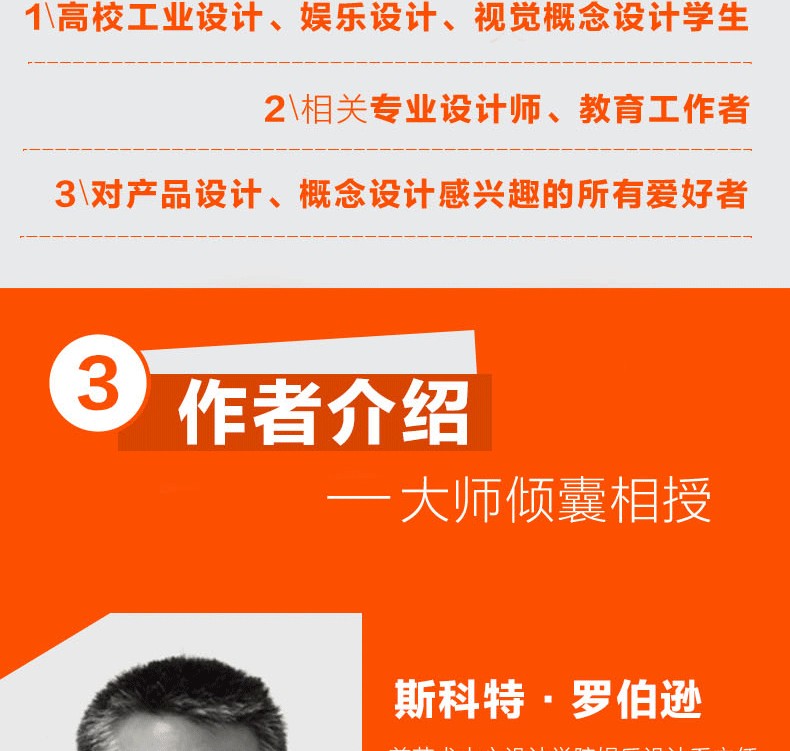 斯科特?羅伯森斯科特?羅伯森擁有20年以上關於設計、繪畫、繪圖以及大學教學和課程設計經驗,對於展示和闡述本書的主題來說, 他具有獨到的、毋庸置疑的專業知識。斯科特已出版了11本設計和概念藝術書籍,還與“日晷工作室”聯合製作了40餘部教學DVD,其中9部是自己授課的DVD。在藝術中心設計學院,他參與設立娛樂設計系,並曾擔任該系主任。他經常受世界各地公司、大學的邀請或通過自己的工作室品牌SRW 授課。